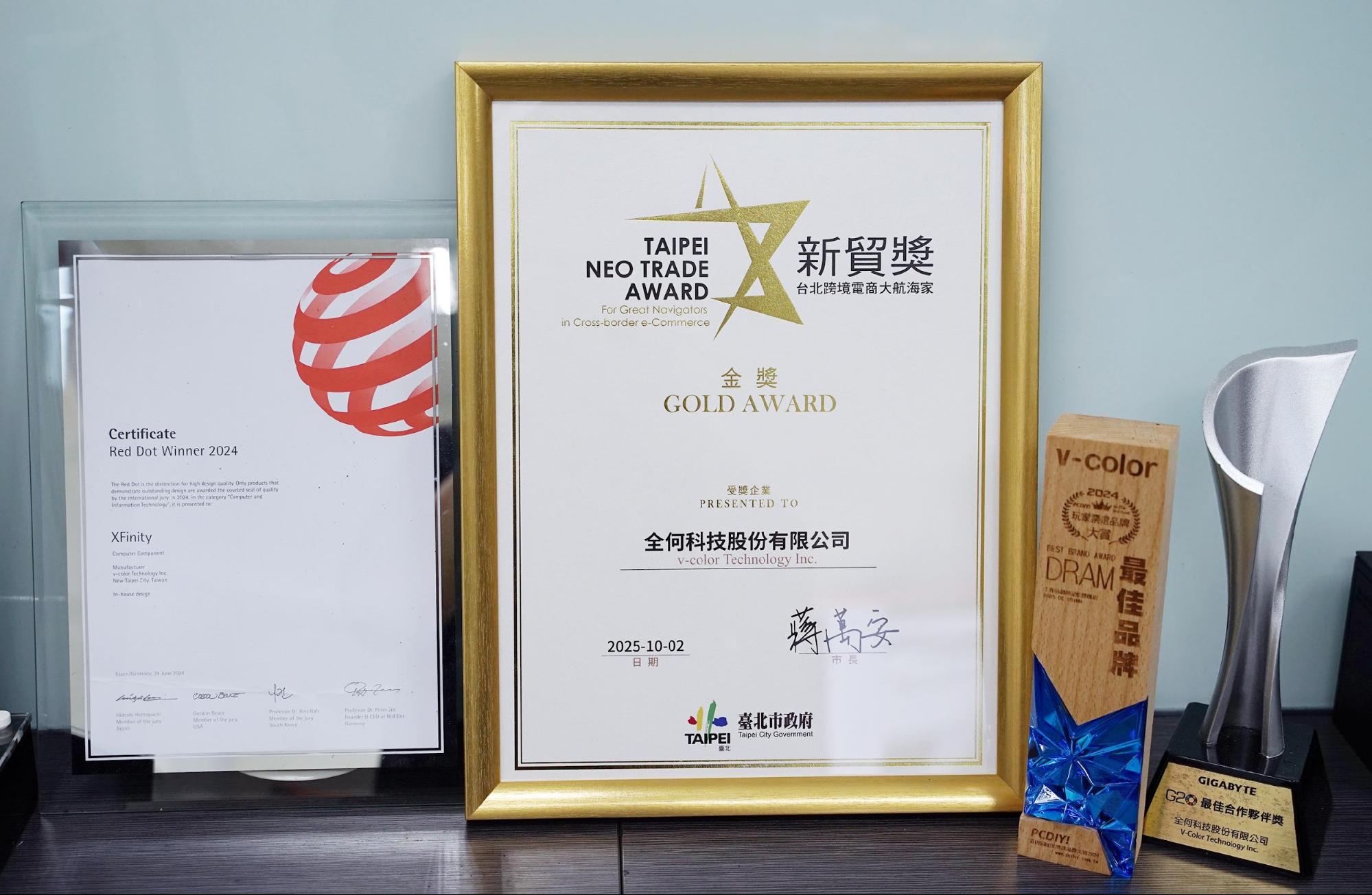 At the recent annual awards held by the Taiwan Importers and Exporters Association, v-color received the Gold Award, demonstrating the strong global competitiveness of Taiwan’s manufacturing industry.
