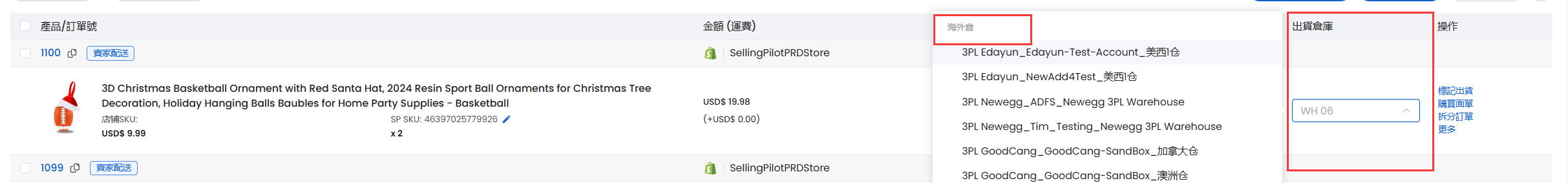 當前面所有設定已完成後,如果用戶需要使用海外倉發貨,則直接在訂單倉庫選擇海外倉即可。隨即,SP將推單給海外倉建立出庫單,出貨後,SP會自動取得物流單號並上傳到頻道完成最終出貨。